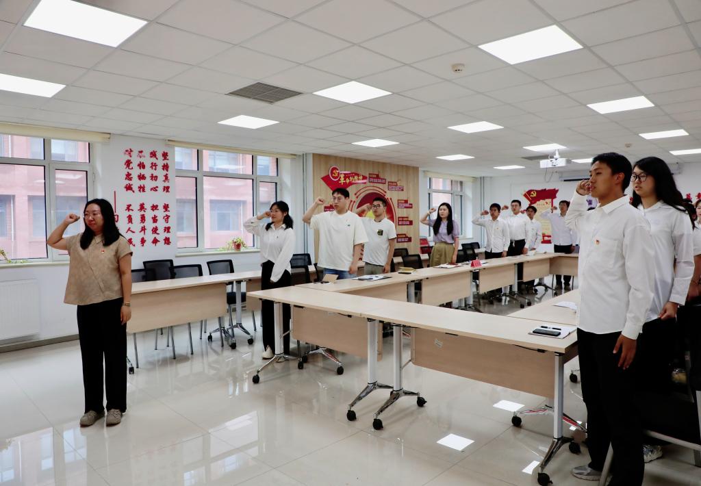 7月,在建党104周年之际,学院在党员活动室举行入党宣誓仪式暨专题教育活动。新党员面向党旗庄严宣誓,公司党委副书记陈秀君老师以“坚守三条线”为主题提出要求:一是严守纪律底线,永葆政治本色;二是争做先进标杆,在学业、科研、服务中发挥先锋模范作用;三是提升政治敏锐性,主动参与“党员领航工程”,为学院发展建言献策。活动现场还就党员领航工程进行了动员部署。