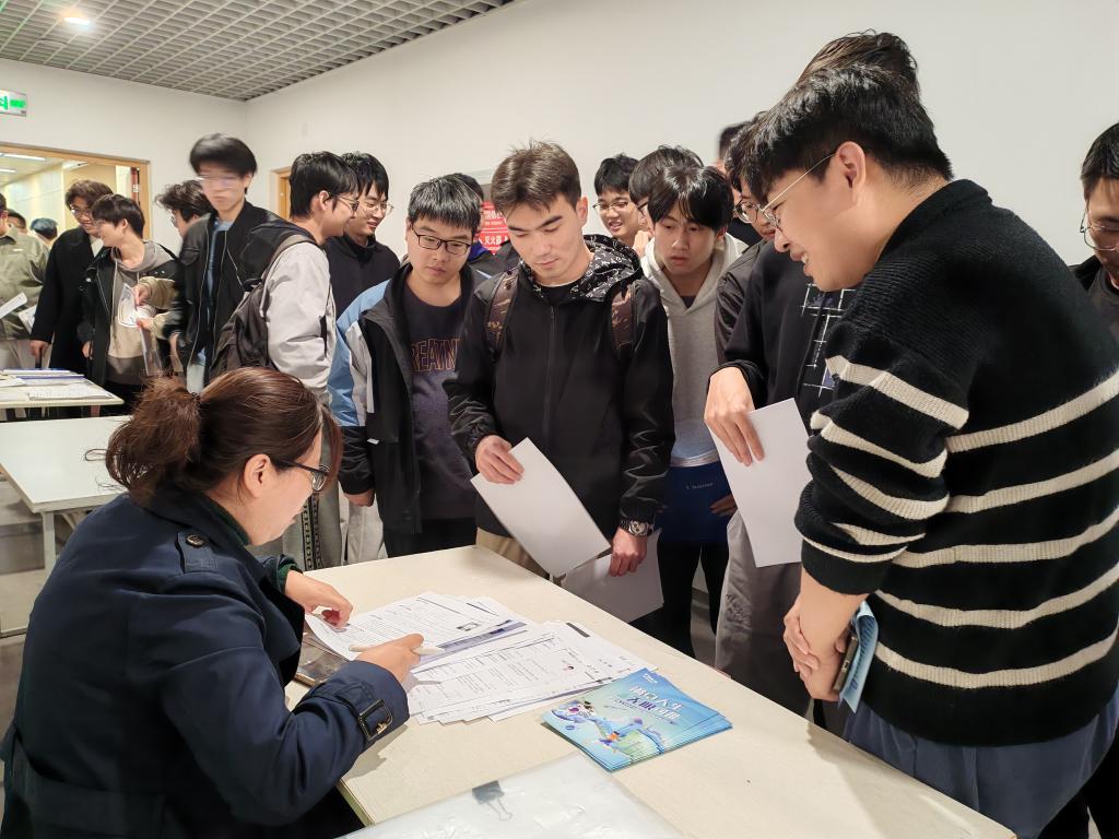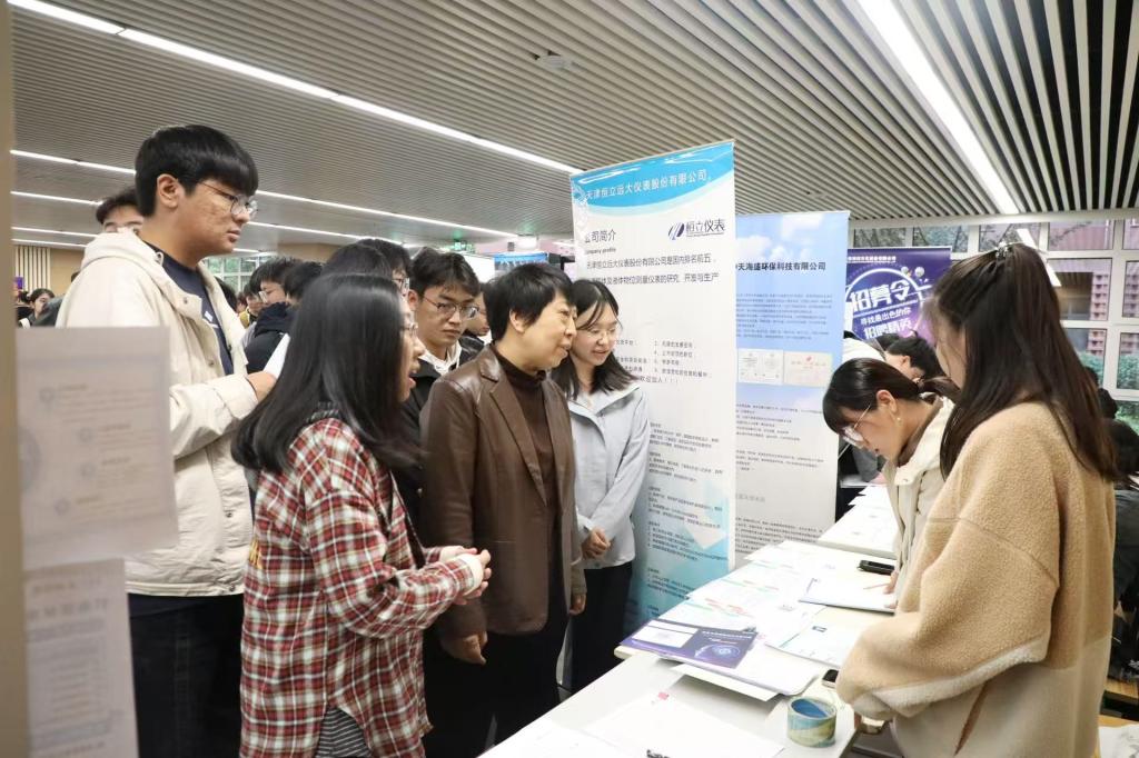 双选会现场,本次双选会设立“求职加油站”功能区,为毕业生开展应征入伍、西部计划、基层就业等政策咨询,进一步提升就业服务精准度。双选会现场秩序井然、气氛热烈。毕业生们围绕工作内容、招聘流程、培养机制与发展路径等重点问题与用人单位深入交流;非毕业年级同学们也积极到场了解行业趋势与岗位能力要求,为职业规划做好准备。